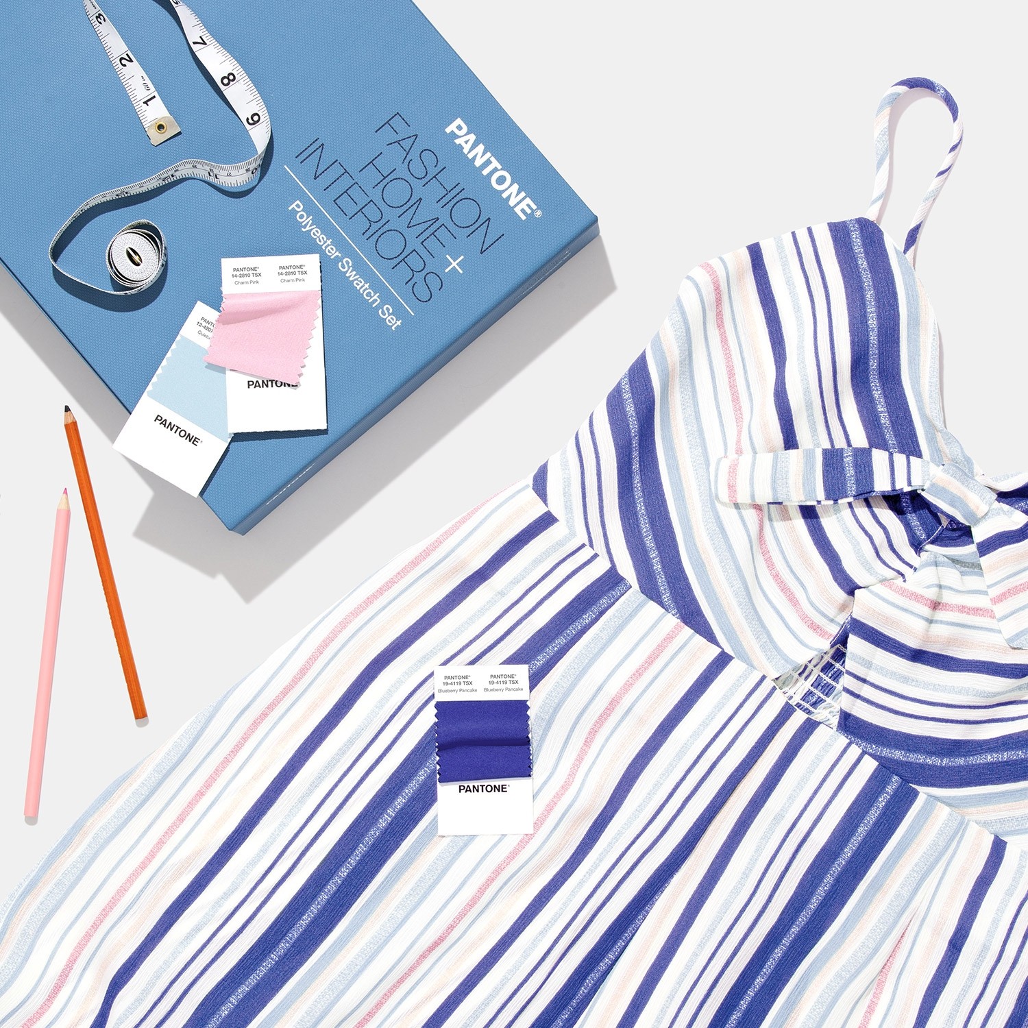 Com 203 cores únicas, orientadas por previsão, para designers e coloristas que trabalham em vestuário, têxteis e soft house, o Pantone Polyester Swatch Book oferece um portfólio de cores fácil de usar num novo formato. As mini-amostras de 5 x 5 cm são protegidas, dobradas em camadas e afixadas em tecido de poliéster 100% sem revestimento. Os bolsos em cascata permitem uma fácil visibilidade de cinco cartões de amostra por linha, com um total de 35 cores visíveis por página. Os cartões de amostras permanecem seguros na página e, quando removidos, incluem nomes impressos nos bolsos para fácil identificação e posterior recolocação.
